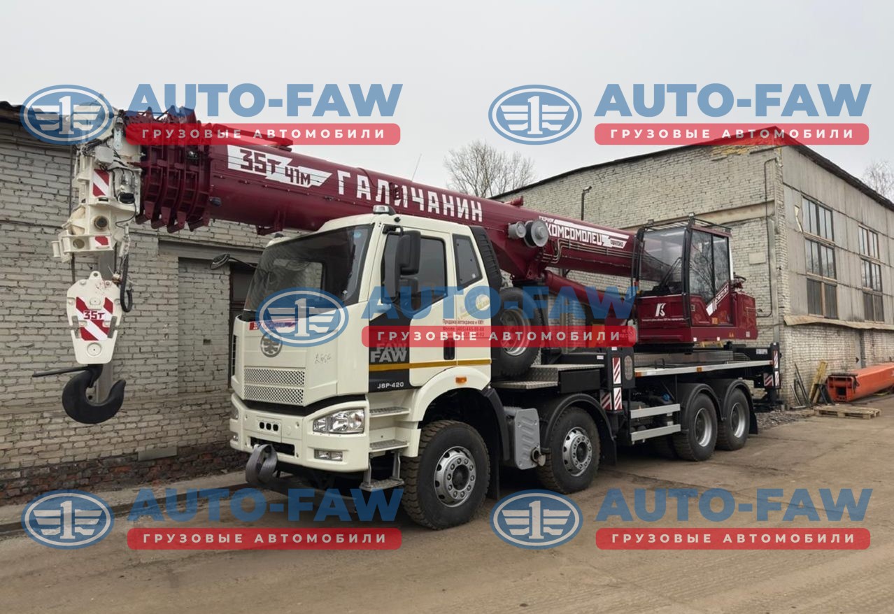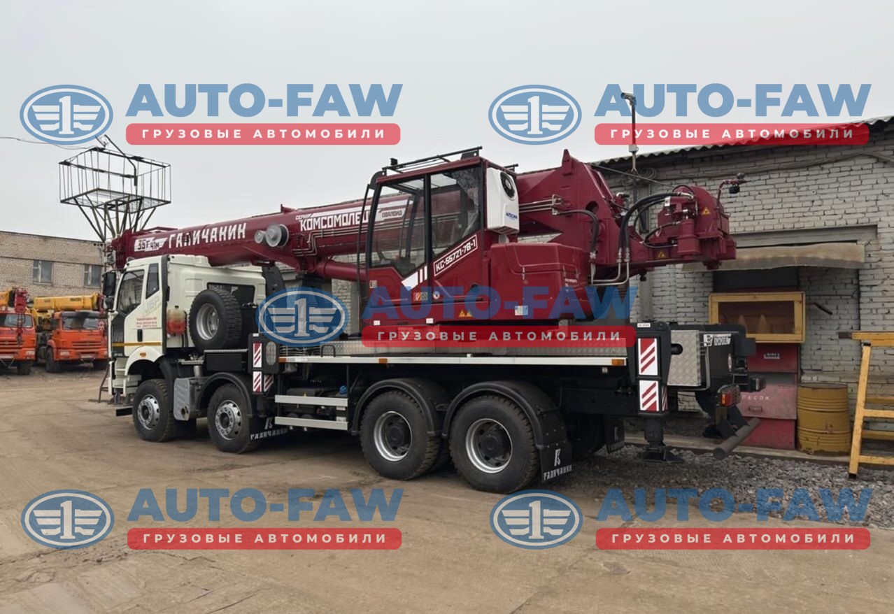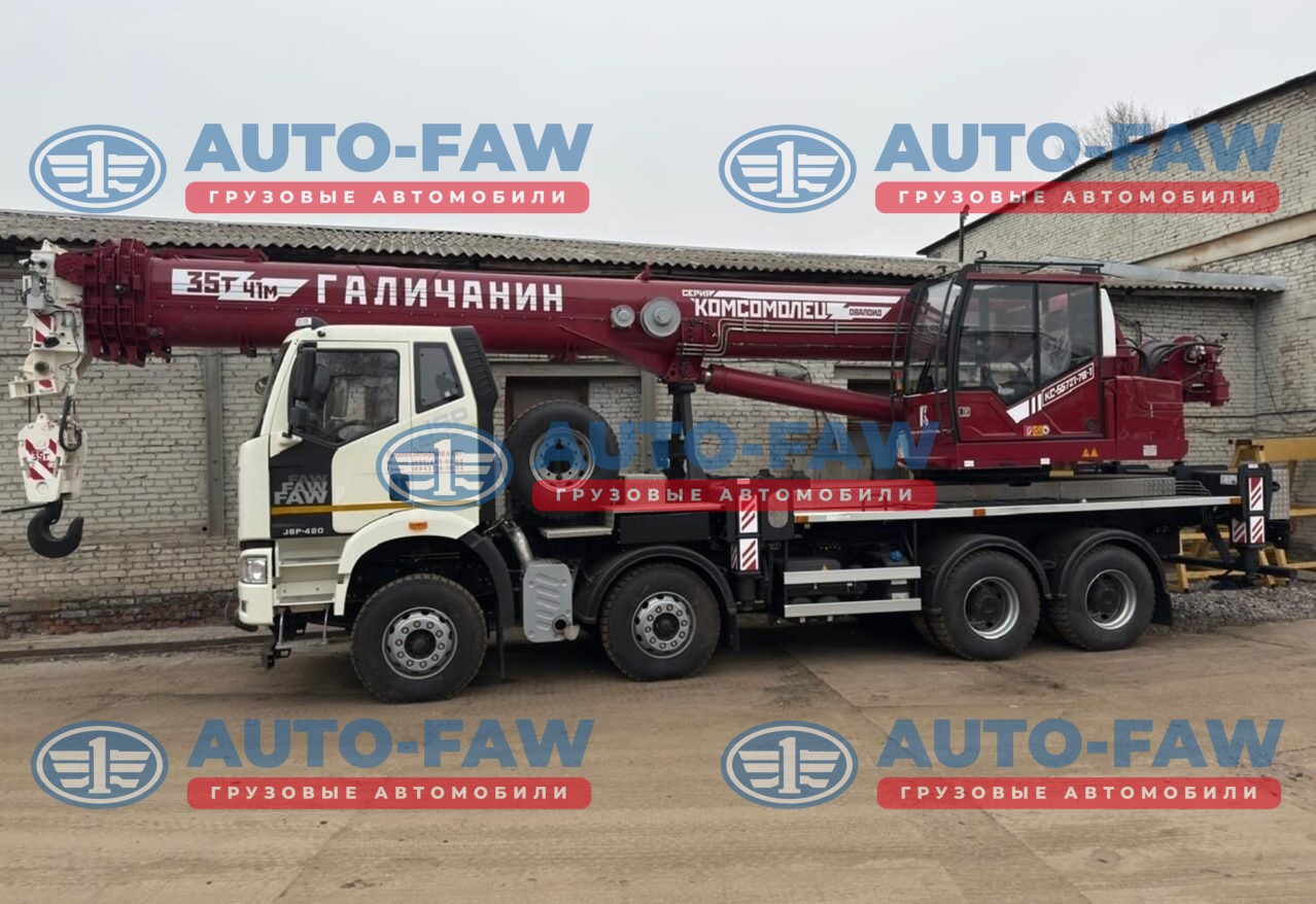 Автокран ГАЛИЧАНИН серии КОМСОМОЛЕЦ на шасси FAW с колесной формулой 8х4. Гру-ть стрелы 35 тонны вылет 41 метра + набор противовесов