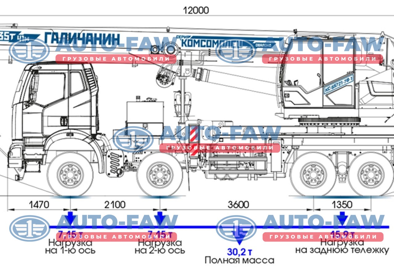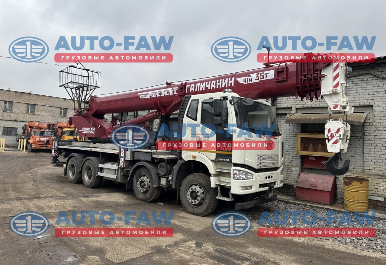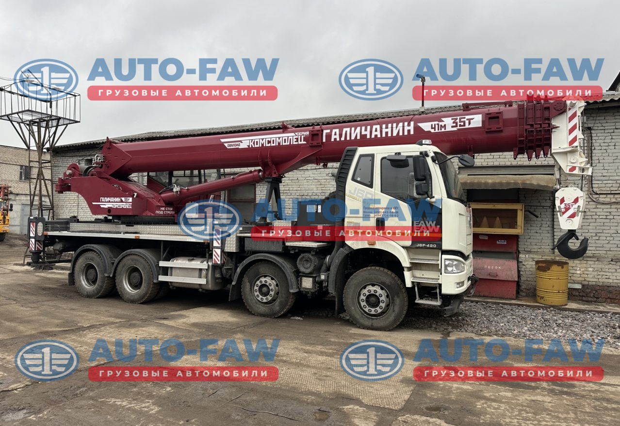 Автокран ГАЛИЧАНИН серии КОМСОМОЛЕЦ на шасси FAW с колесной формулой 8х4. Гру-ть стрелы 35 тонны вылет 41 метра + набор противовесов
