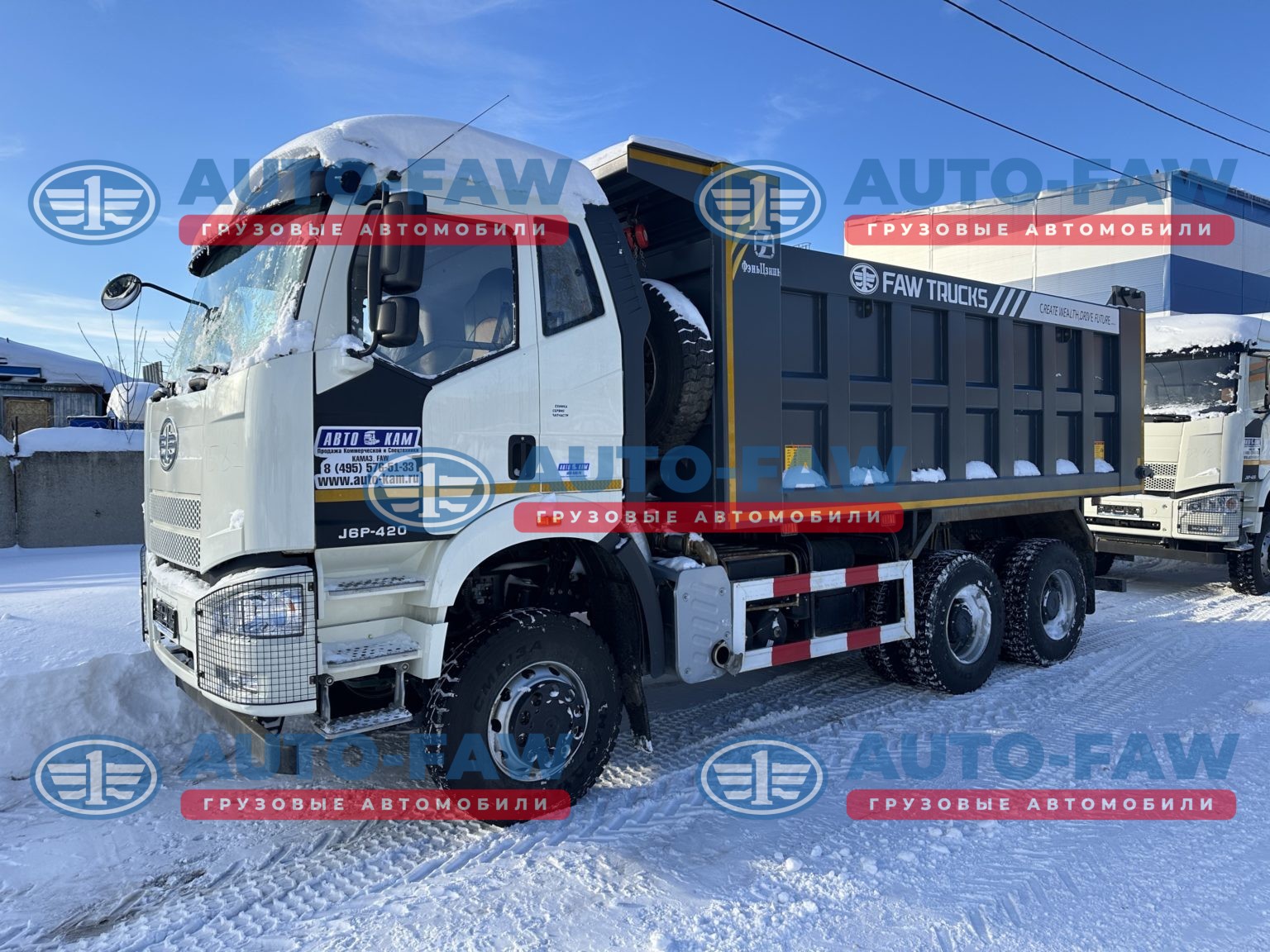 Отгрузили на новое месторождение руды два новеньких самосвала FAW CA 3520 с колесной формулой 6х6.