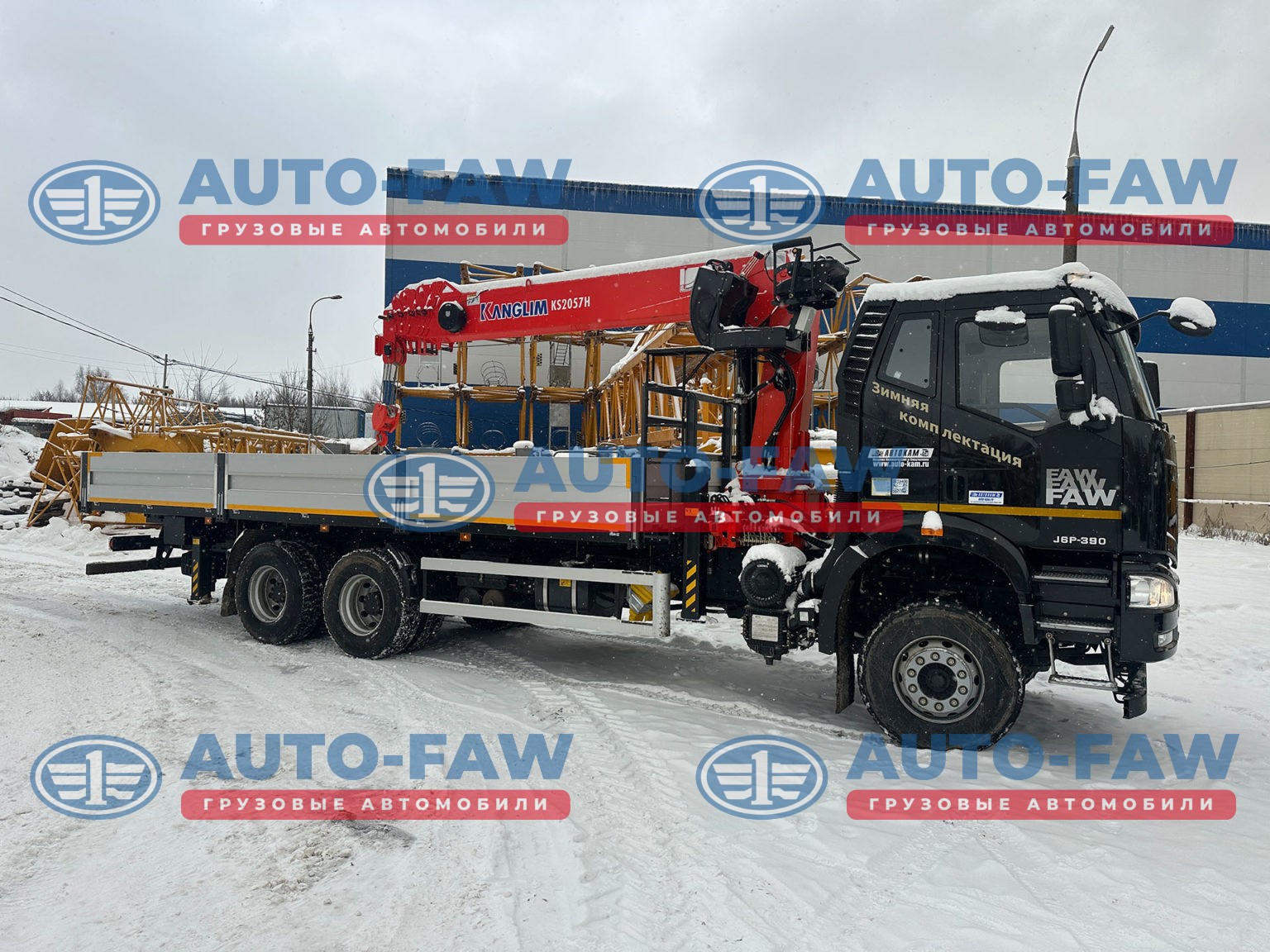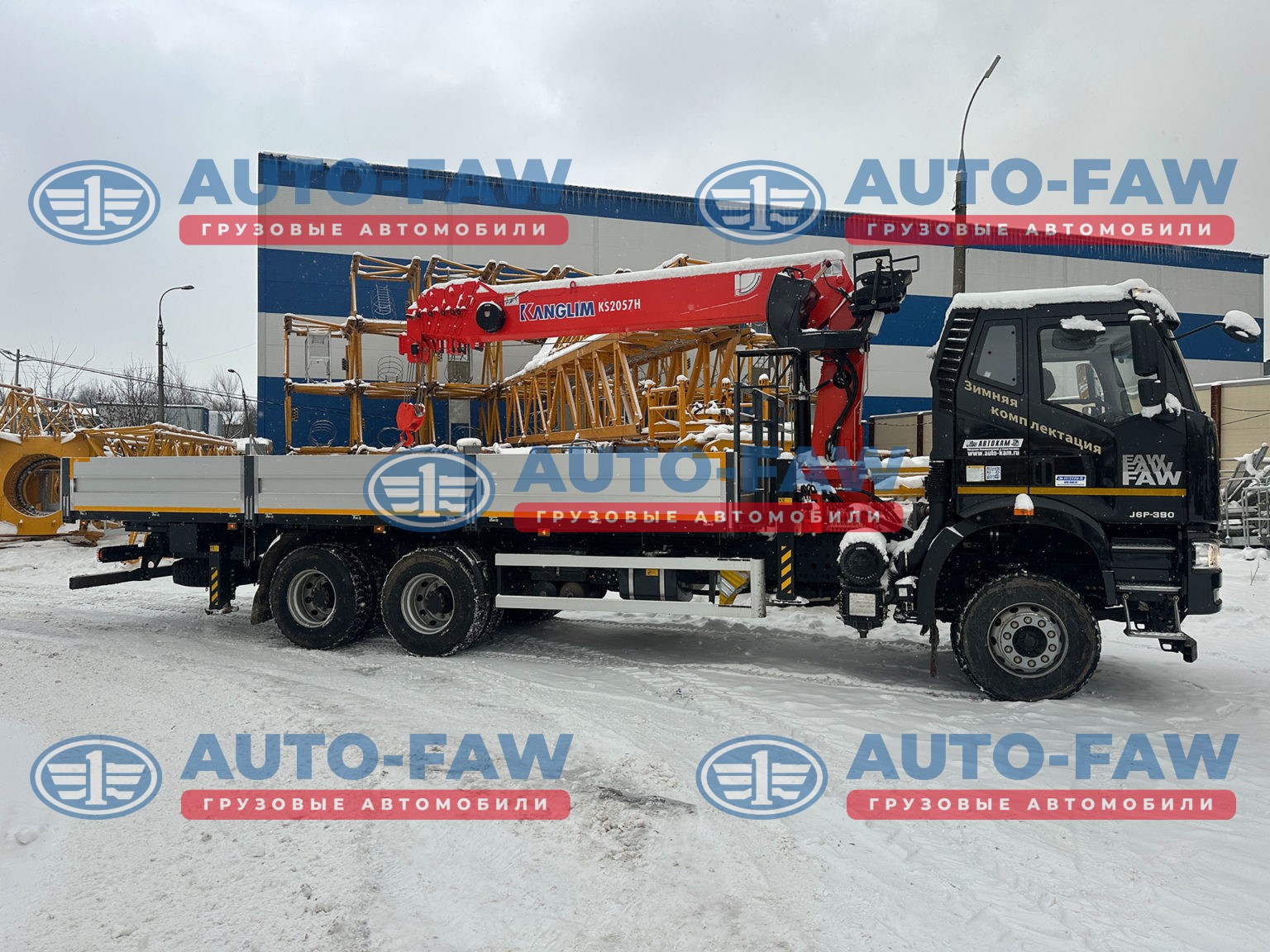 Отгрузили новый бортовой FAW 3250 с колесной формулой 6х4 с КМУ KANGLIM KS 2057H груз-тью 8 тонн, отрицательный угол , вылет 22 метра. Один из лучших кранов манипуляторов на нашем рынке. Бортовая платформа — алюминий с быстросъемными стойками 7800мм.