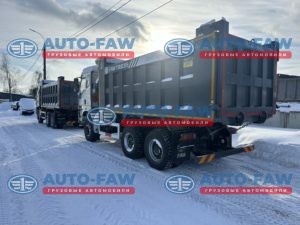 Самосвал оснащен постоянным полным приводом с возможностью блокировки всех колес. Он также оснащен надежной 10-ступенчатой коробкой передач FAW CA10TAX190M. Кузов автомобиля имеет вместительность до 18,6 кубических метров, обеспечивая достаточно пространства для перевозки крупных грузов.