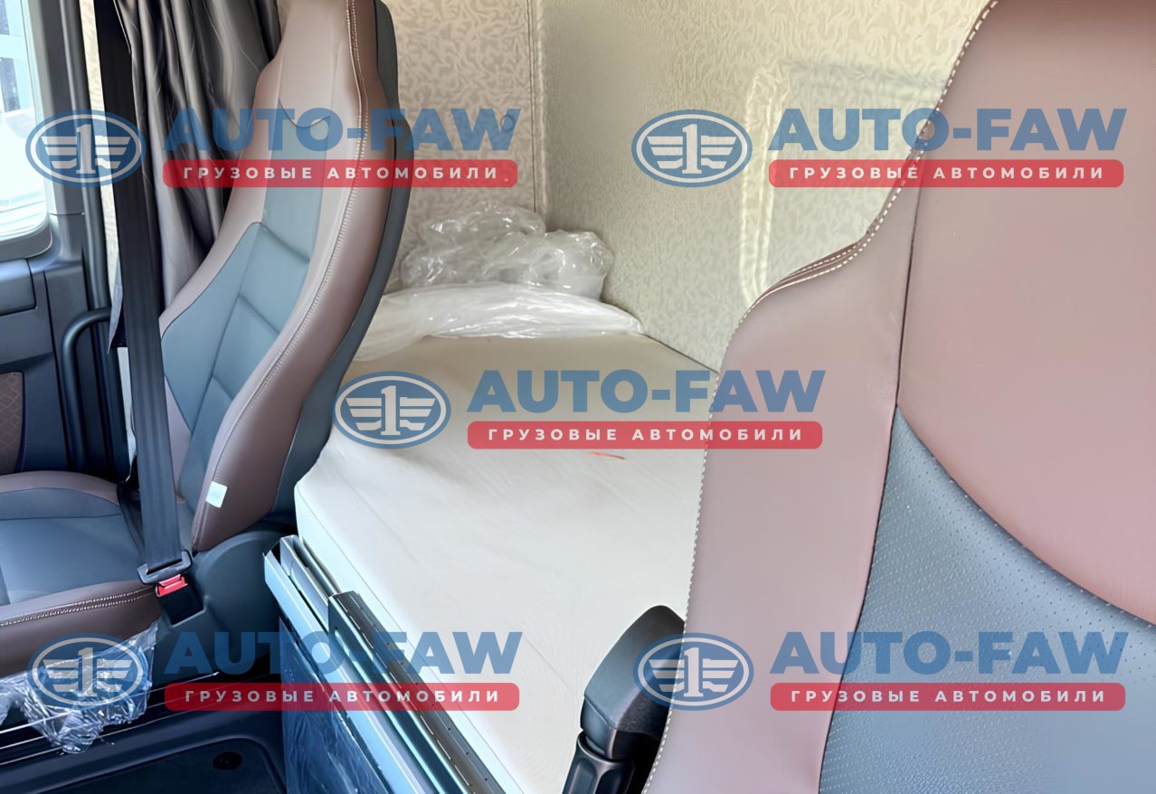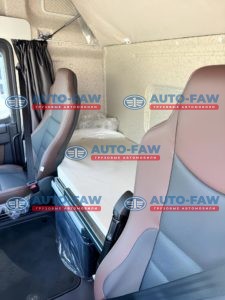FAW J7 4×2 выделяется футуристичным и аэродинамичным дизайном. Обтекаемая кабина снижает сопротивление воздуха, улучшая топливную эффективность, а стильный экстерьер подчёркивает современность модели. Кабина просторная (высота 2 метра), с удобным доступом через три ступени и усиленную подножку в бампере. Внутри — эргономичное рабочее место водителя: сиденье Grammer с пневмоподвеской, вентиляцией и обогревом, два спальных места, климат-контроль, мультимедийная система с 8-дюймовым экраном, а также множество отсеков для хранения. Высокий уровень шумоизоляции обеспечивает комфорт даже в долгих рейсах.