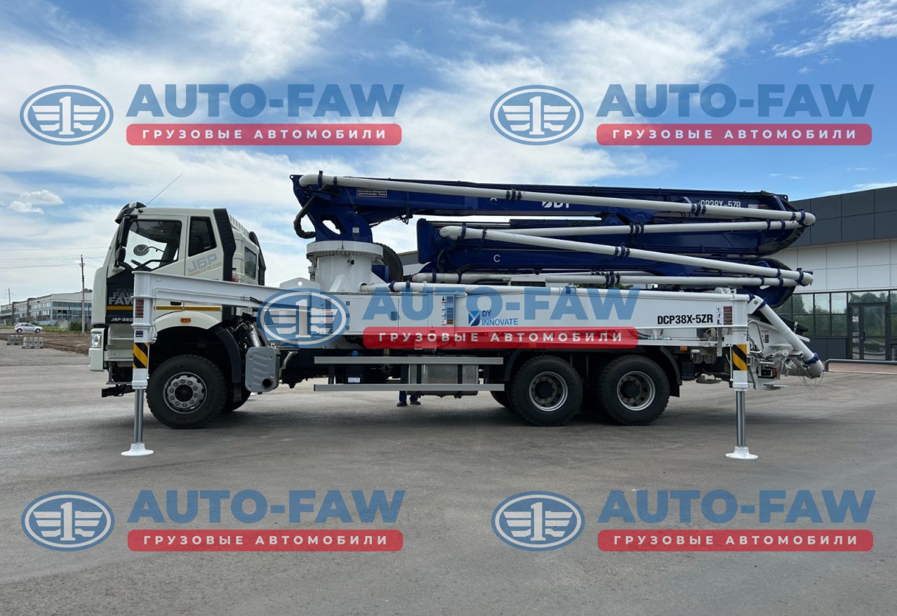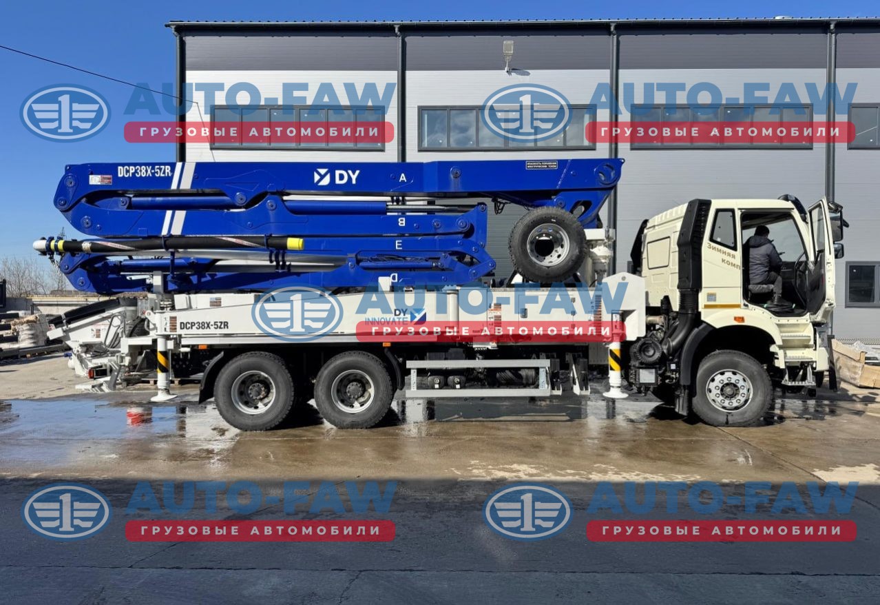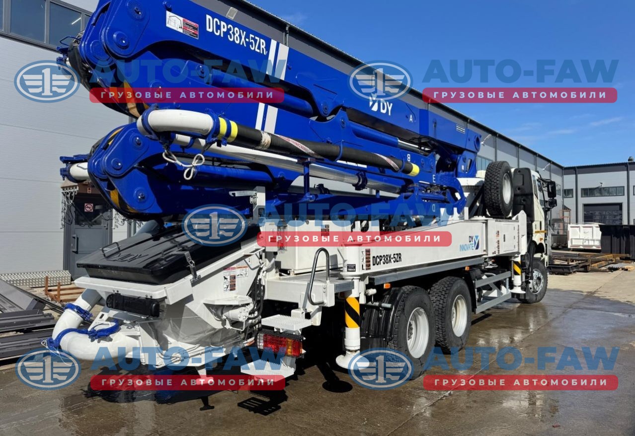 Автобетононасос DongYang DPC38X-5ZR 38 метров на шасси FAW CA3250 J6 Корейского производства. Количество секций стрелы 5 штук