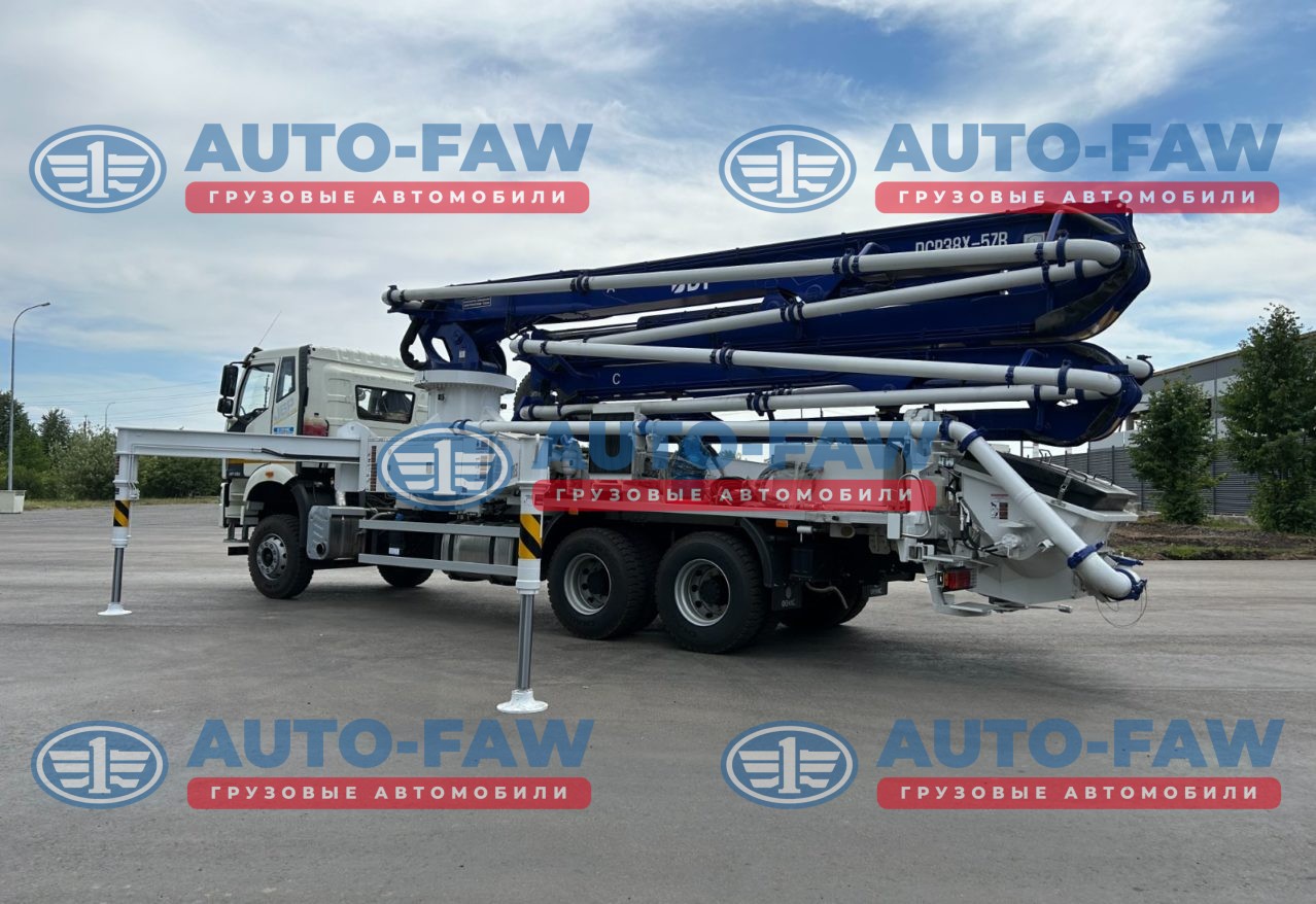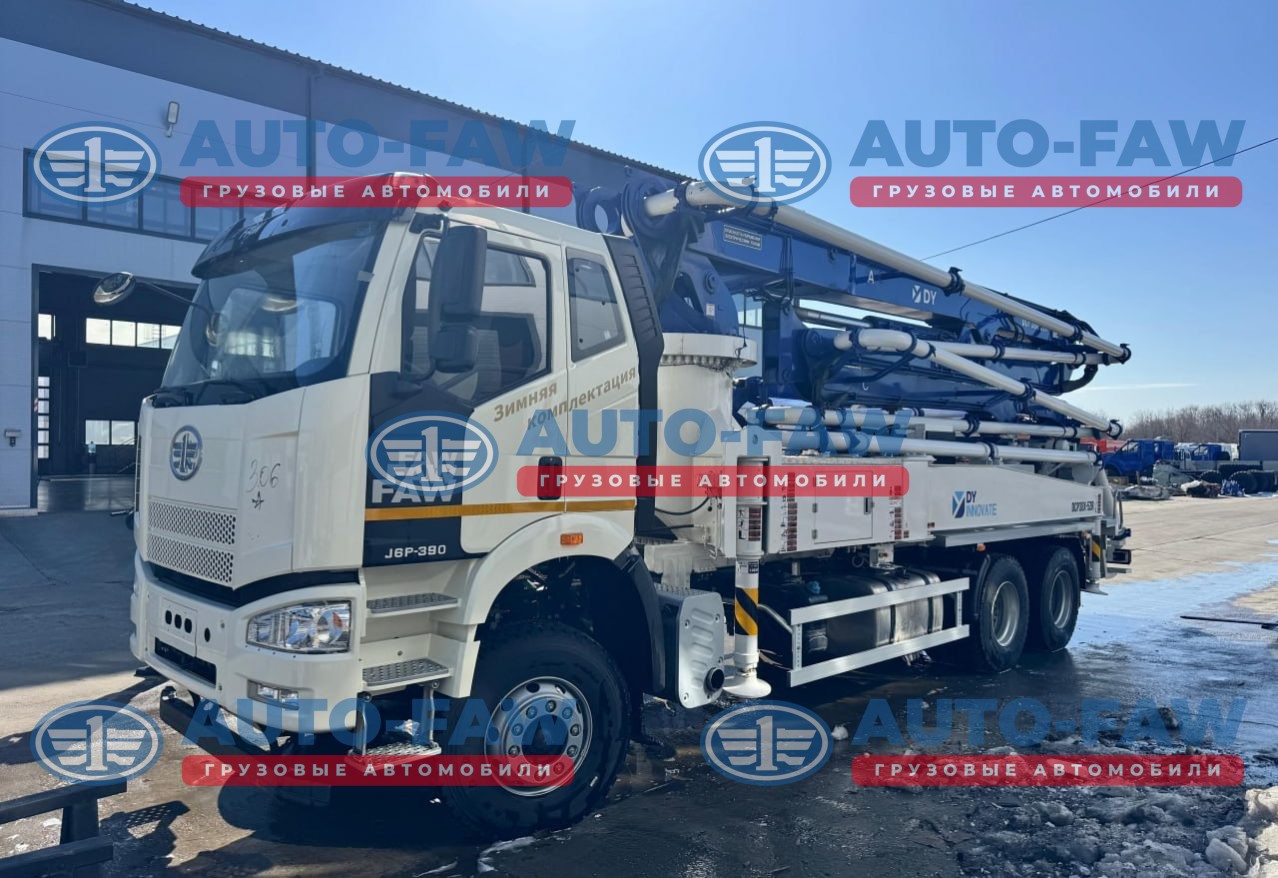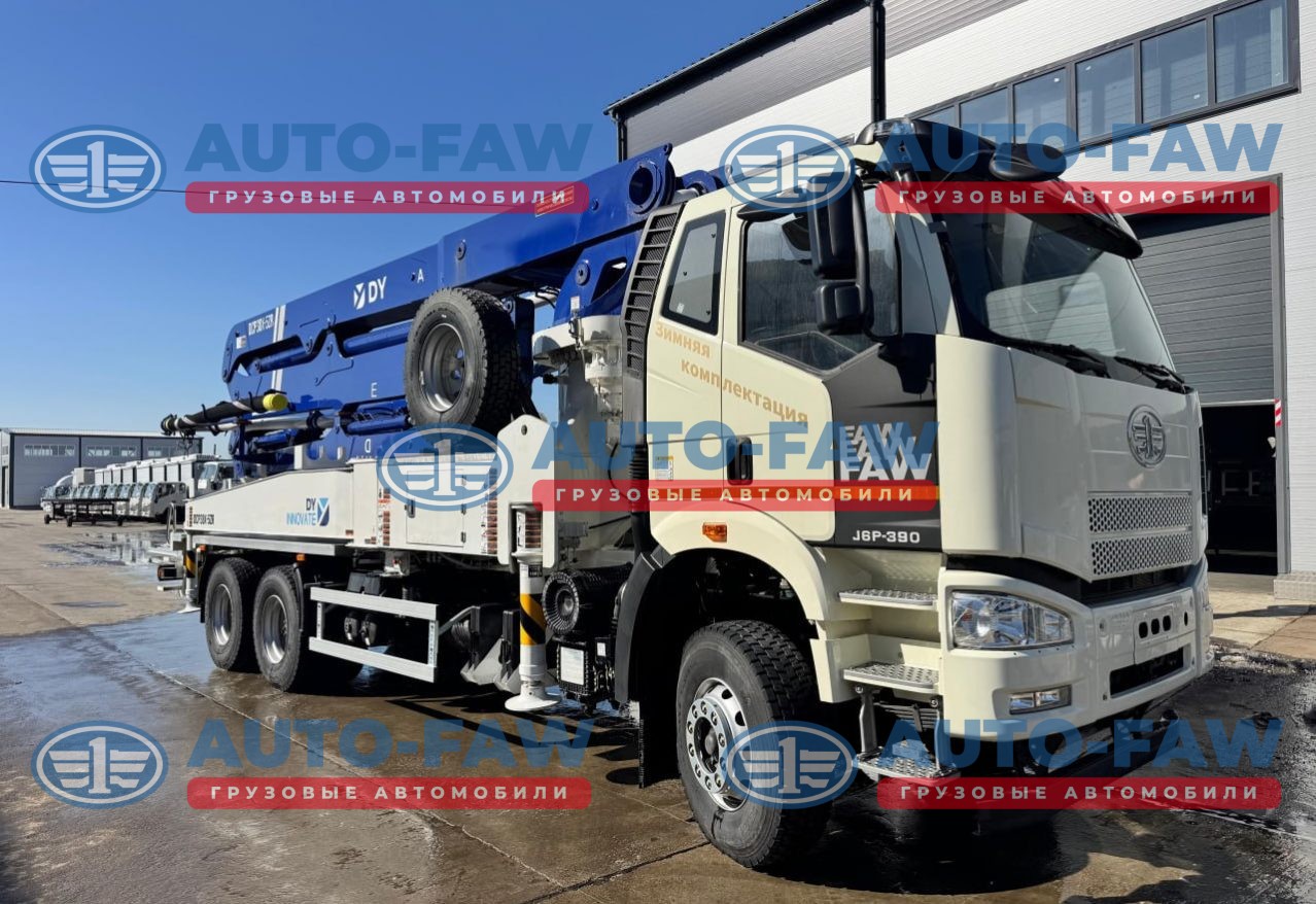 Автобетононасос DongYang DPC38X-5ZR 38 метров на шасси FAW CA3250 J6 Корейского производства. Количество секций стрелы 5 штук