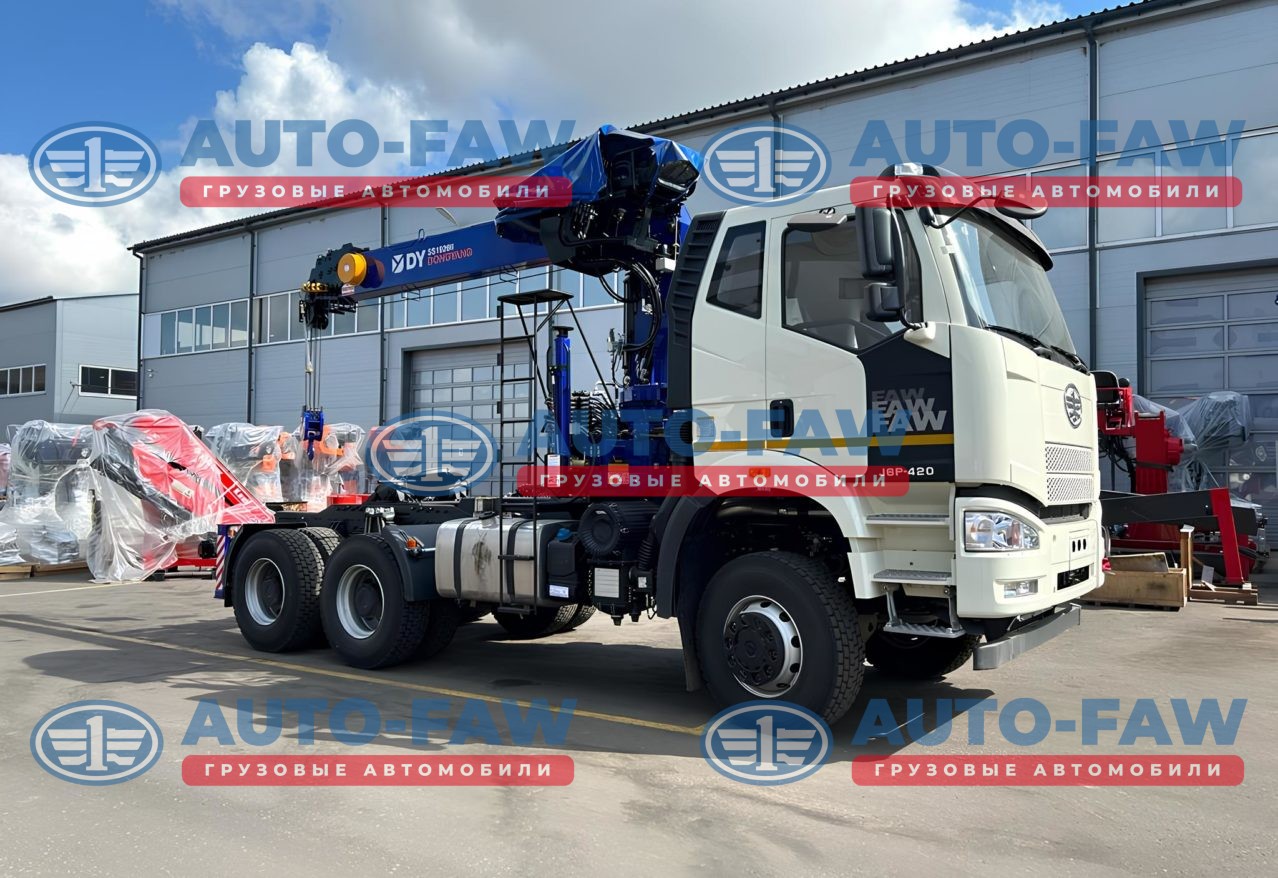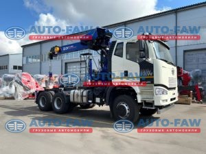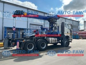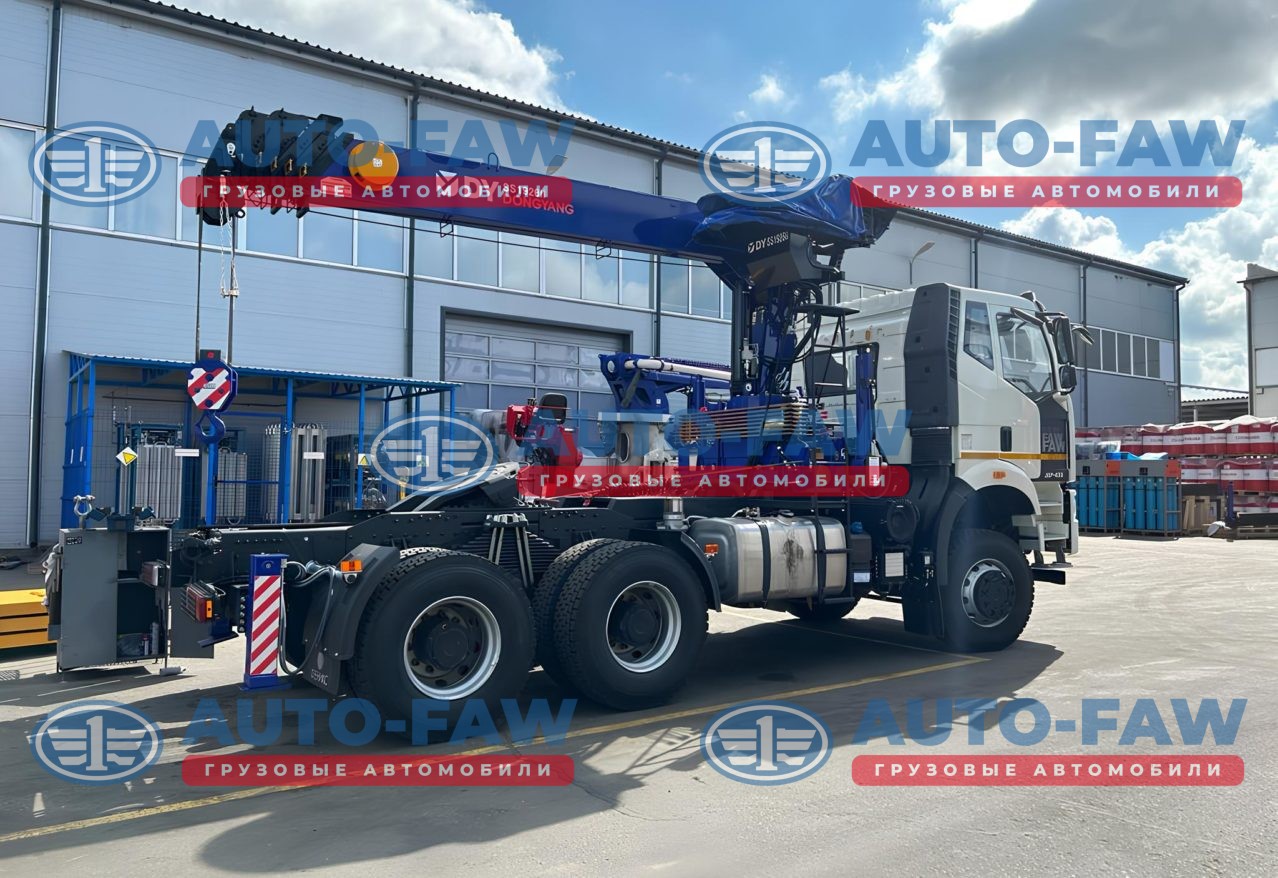 Седельный тягач 6х4 FAW СА 3250 с кран-манипулятором DongYang 1956 может эксплуатироваться в составе автопоезда с бортовым полуприцеп до 16 метром