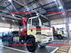 Компания АвтоФАВ представляет полноприводный Седельный тягач FAW CA3250 на односкатной ошиновке С КМУ Sunhunk K168