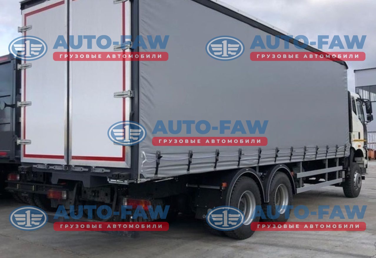 - Описание бортовой платформы • Каркас основания платформы стальной изготовлен из продольных и поперечных лонжеронов, продольные лонжероны выполнены из высокопрочной стальной профильной трубы, повторяющей контур рамы шасси. • Поперечные лонжероны из листа, гнутые в профиль, выполнены в виде трапеции для повышения несущей прочности. • Боковые обвязки гнутый профиль, образуют высокопрочный профиль, так же являются ложем для укладки полов. • Пол влагостойкая ламинированная фанера, толщиною не менее 21 мм. с противоскользящим покрытием. • Стойки промежуточные стальные, легкосъёмная справа и слева, по 2 шт. на каждом боку. Боковые борта выполнены из алюминиевой доски (цвет светло-серый), высота борта 600 мм, замки бортов покупные, так же интегрированы в алюминиевый профиль, замки с антикоррозийным покрытием. • Такелажные крюки для крепления груза. • В передней части кузова расположен каркас, который служит защитой от смещения груза в переднюю часть автомобиля. • Тент-каркас: предусмотрен каркас-тент (тент серого цвета). Комплект бортовой крыши - продольные направляющие алюминиевый профиль • Крыша сдвижная с откидной задней кареткой. • Тент боковой слева и справа сдвигается на роликах. • Задний борт выполнен в виде ворот, состоит из панели борта, сэндвич панель, металлический лист с пластиковым покрытием. • Габаритные размеры платформы 8500х2550х2850мм • Фурнитура заднего борта с антикоррозийным покрытием. • Прочее оборудование: пластиковые крылья с резиновыми брызговиками, боковая защита, противоподкатный брус, резиновые отбойники, пластиковый или металлаческий поручень для подъёма в кузов